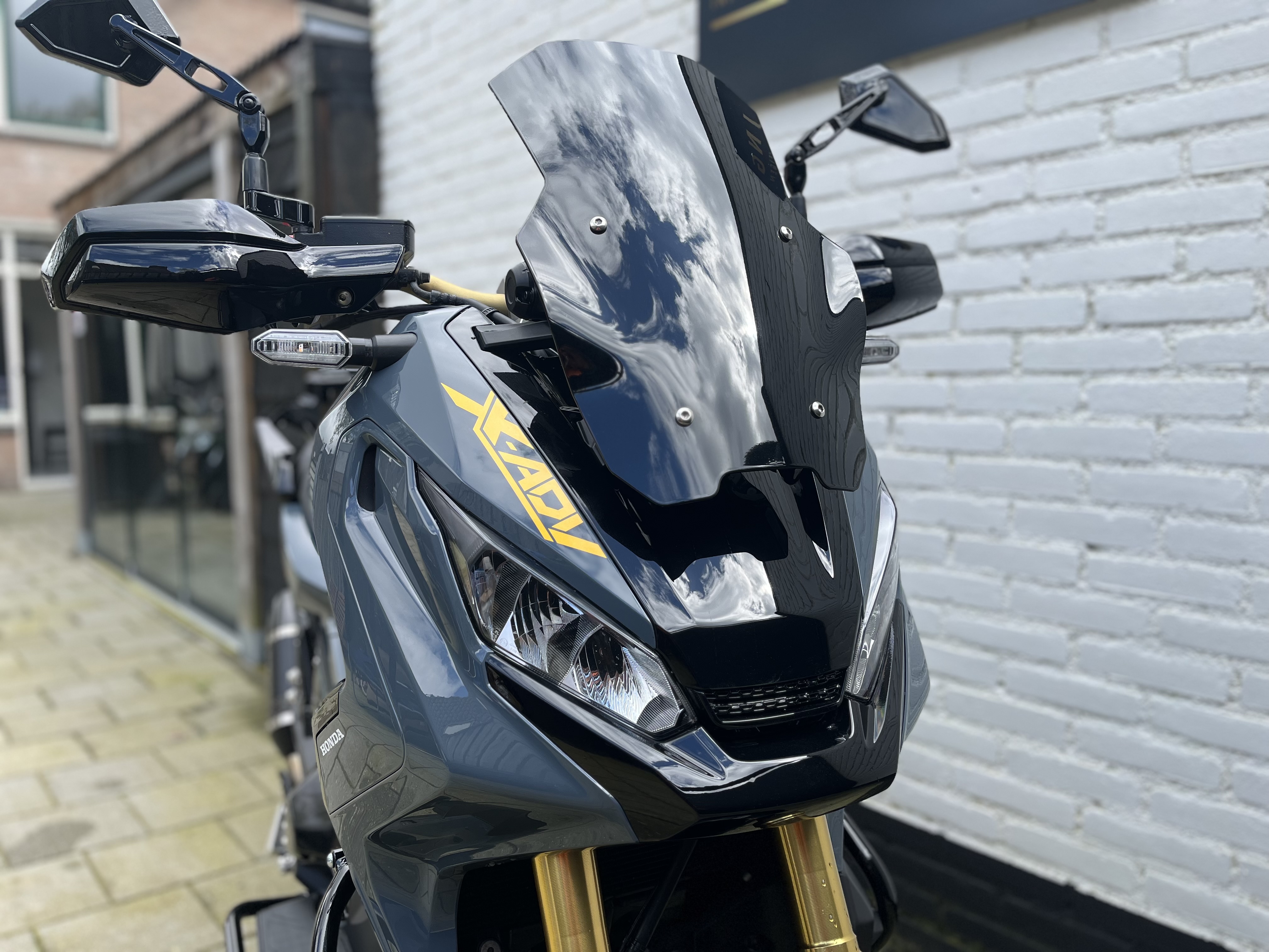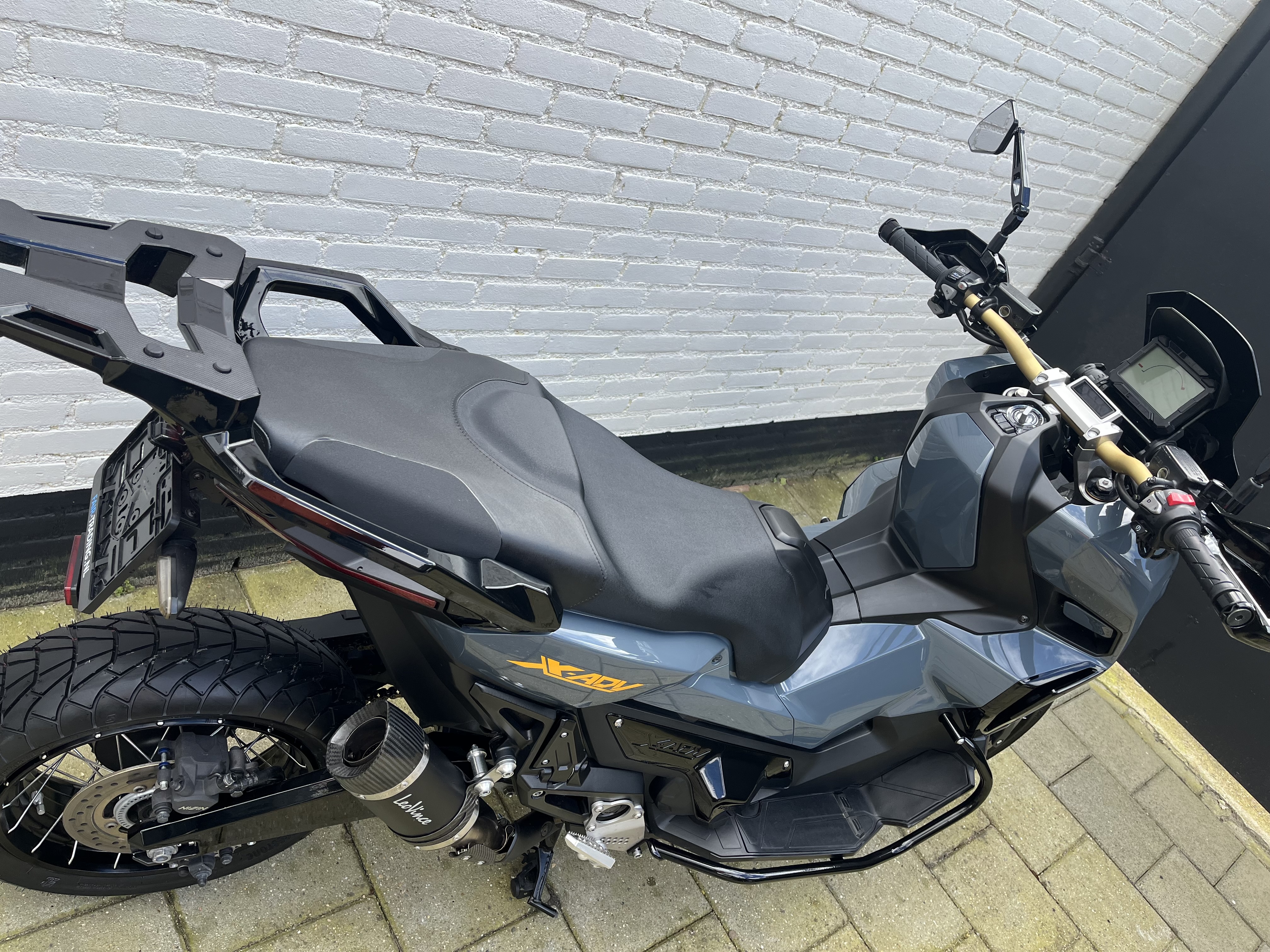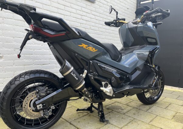 Met deze vakkundig aangepakte “one of a kind” X-ADV weet je zeker dat je uniek bent. Uitgevoerd in de kleuren “Graphite Blue (Porsche) en hoogglans zwart, afgewerkt met gele accenten en Leovince uitlaat.